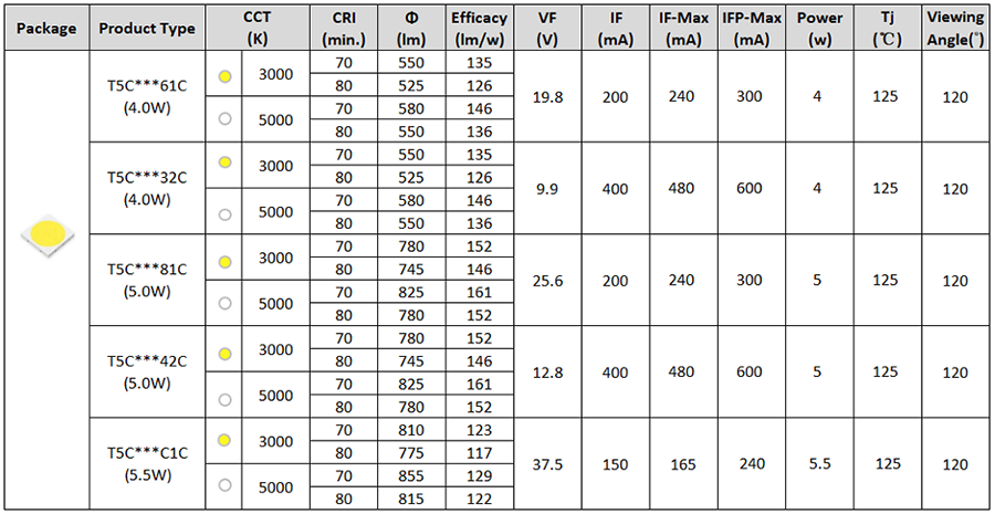 • 不同功率版本,單顆實(shí)現(xiàn)400-700流明光輸出
